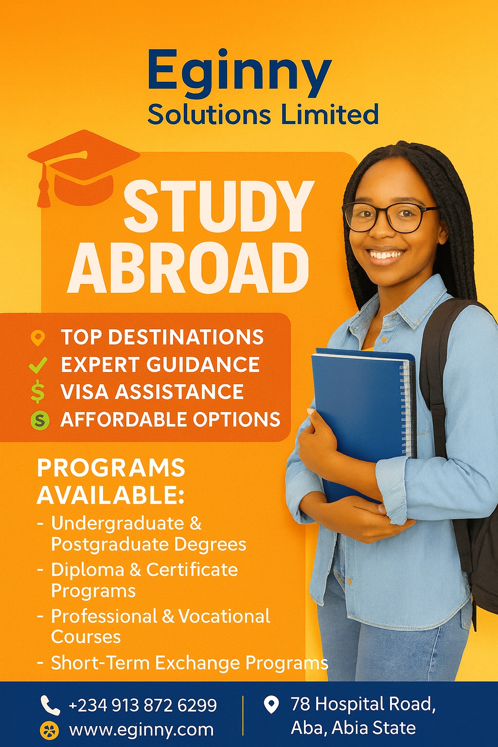 Are you ready to unlock global opportunities, gain world-class education, and build an international career? At Eginny Solutions Limited, we make your dream of studying abroad a reality.